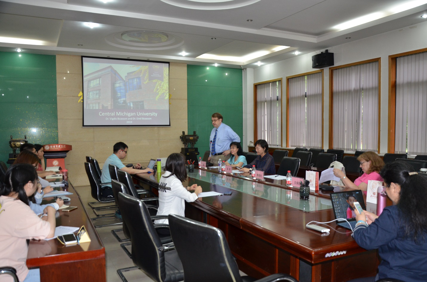 6月28日,中密歇根大学商学院工商信息系统教授Emil Boasson、金融和法律系法律教授Nancy White、金融和法律系金融教授Vigdis Boasson来访公司,与经理吴振磊教授、信息管理与信息系统系副主任高鹏副教授、实验中心主任高原副教授、经理助理康蓉副教授及学校国际项目管理办公室刘园老师召开座谈会。首先,双方介绍了各自学院的基本情况。中密歇根大学是一座历史过百年的美国州立综合性大学,其领域涉及工商、教育、医疗等各个方面。之后,Emil Boasson教授重点介绍了其优势学科——商业信息系统科学硕士(MSIS)及其培养内容为企业资源规划软件SAP,高原副教授也介绍了公司在该领域的教学工作开展情况,双方商定以此为基础,进行团队、员工、科研等领域的合作。随后双方又就具体合作内容与方式做了进一步沟通。
