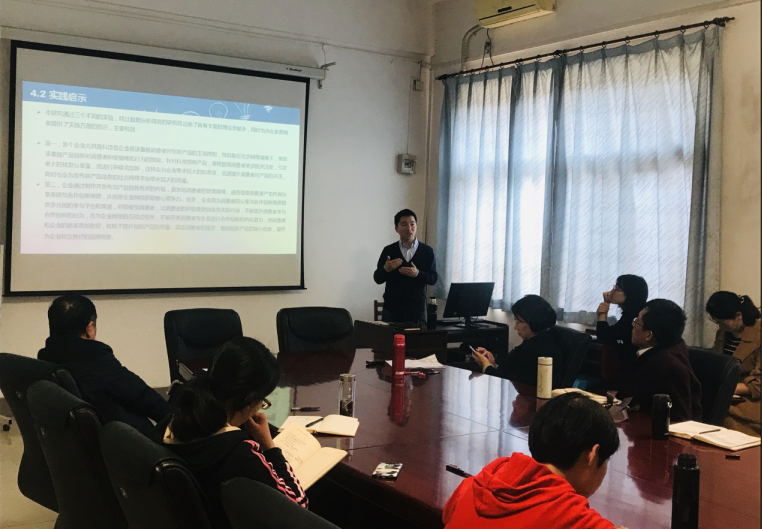 刘伟博士此次主讲的题目“突破式产品创新为何以及何时能引发社交媒体粉丝效应”是他主持的国家自然科学基金青年项目的一个研究主题。他先介绍了在线内容病毒式分享机制的研究综述,然后详细讲解了该实证研究的选题背景、研究假设、实验方法设计、数据分析以及结论。随后,李纯青教授和在场的老师与刘博士就论文的相关问题做了深入交流和探讨,一方面对该选题的意义和价值做出了积极评价,另一方面也为论文的改进和完善提出了许多宝贵建议。