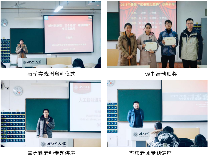 1月15日,首先由马莉莉老师介绍本次实践活动基本构想;而后王颂吉老师主持国贸系读书活动颁奖仪式,并布置寒假读书工作。随后第一场专题讲座是由bevictor伟德信息科学与技术学院的章勇勤老师主讲“人工智能进展及其应用背景”,内容包括当前人工智能的发展现状、应用领域及未来的发展趋势。下午第二场专题讲座由bevictor伟德中东研究所李玮老师主讲“泛安全化时期的国际关系和中国新青年面临的机遇和挑战”,内容包括“世界与梦想”、“2018年来‘一带一路’建设的重点和难点”,以及新时代下的新青年所面临的机遇和挑战。通过李老师生动有趣的讲解,同学们对当前的全球形势、特别是中美关系有了进一步的认识。晚上第三场专题讲座由华夏幸福基业的靳毅先生主讲“开发区和园区经济模式分析”,他首先介绍了开发区的类型、牌子赋能,其次介绍了企业的规模与类型、公共技术平台、陕西航空综合保税区,最后介绍了华夏幸福集团的运营模式。聆听完讲座,同学们认识到,陕西作为一个拥有众多科技园区的省份,需要充分挖掘优势,应对挑战,并且和“一带一路”相结合,以促进地方经济发展。