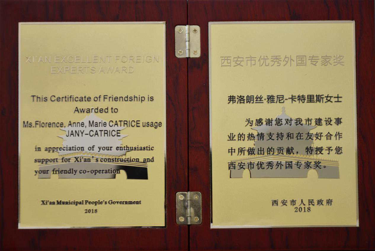 近日,西安市政府发布决定(市政发〔2018〕45号),对2018年为西安市经济社会发展做出突出贡献,在大西安奋力追赶超越、加快建设国家中心城市和国际化大都市中起到重要作用的外国专家授予“西安友谊奖”(10名)和“西安市优秀外国专家奖”(10名)。公司外专Florence Jany-Catrice教授荣获2018年“西安市优秀外国专家奖”。