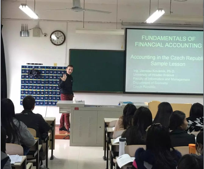 访学期间,Jaroslav Kovárník副教授为2015级会计学专业和2015级经济统计学专业员工讲授了关于“存货(Inventory)”的会计准则,深入解读了“Periodic Inventory System”和“Perpetual Inventory System”两种存货核算方法。通过学习,员工进一步理解了中国与捷克在存货核算方面的异同,并加深了对会计准则国际趋同的认识。Jaroslav Kovárník副教授还为2015级会计学专业员工做了题为“捷克会计专业员工培养”(Accounting in the Czech Republic Sample Lesson)和“捷克会计准则及会计报表实践”(Accounting Principles and Financial Statements in Czech)两场学术报告。在学术报告中,他详细介绍了捷克会计学实务与学术研究的发展现状与目前关注的主要问题,对捷克的利润表(Income Statement)、资产负债表(Balance Sheet)、现金流量表(Statement of Cash Flows)和股东权益变动表(Statement of Stockholders,Equity)等四大报表体系进行了详细解读,并将其与我国目前的会计信息披露体系和模式做了进一步对比分析。
