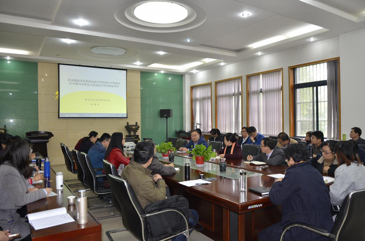 2016年11月2日下午,bevictor伟德经济类教师学术沙龙2016年第3期(总第78期)在长安校区8号楼一层会议室成功举行。沙龙邀请经理任保平教授以“在发展经济学和政治经济学的结合当中构建当代中国马克思主义政治经济学的理论体系”为题,做了一场观点新颖、思想深刻的学术报告。沙龙由副经理何爱平教授主持,40余名青年教师参加了此次活动。