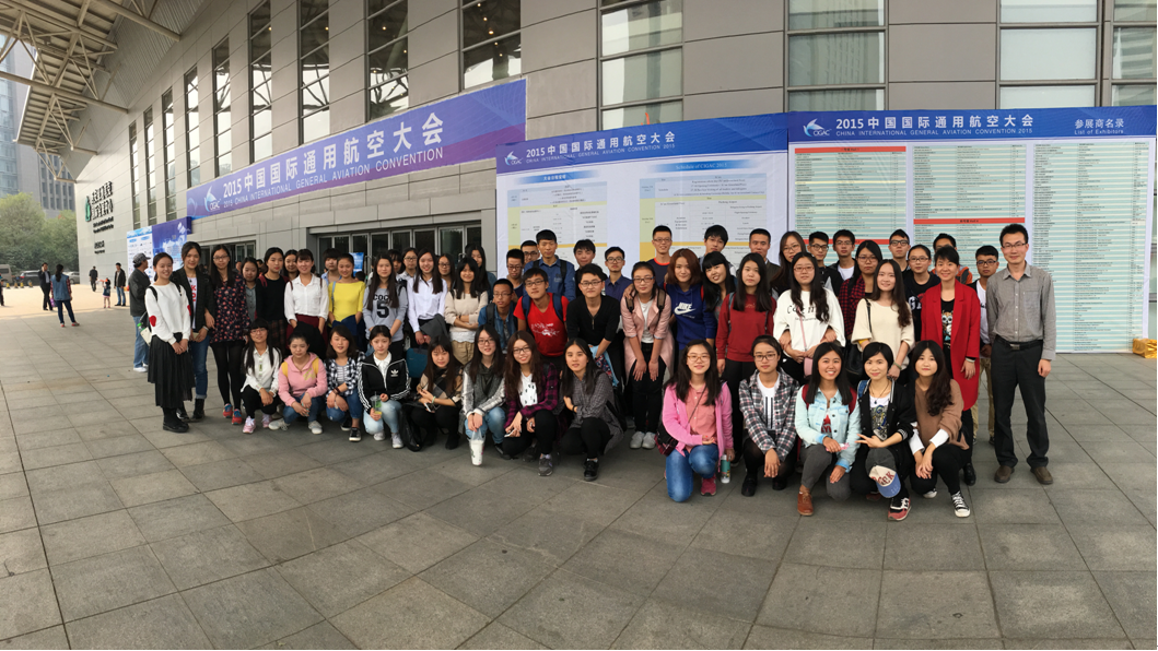 10月18日下午,在世界经济与贸易系马莉莉与王颂吉老师带领下,2013、2014级国际经济与贸易专业同学一行近60人赴西安绿地会展中心参观2015中国国际通用航空大会航空设备器材展。