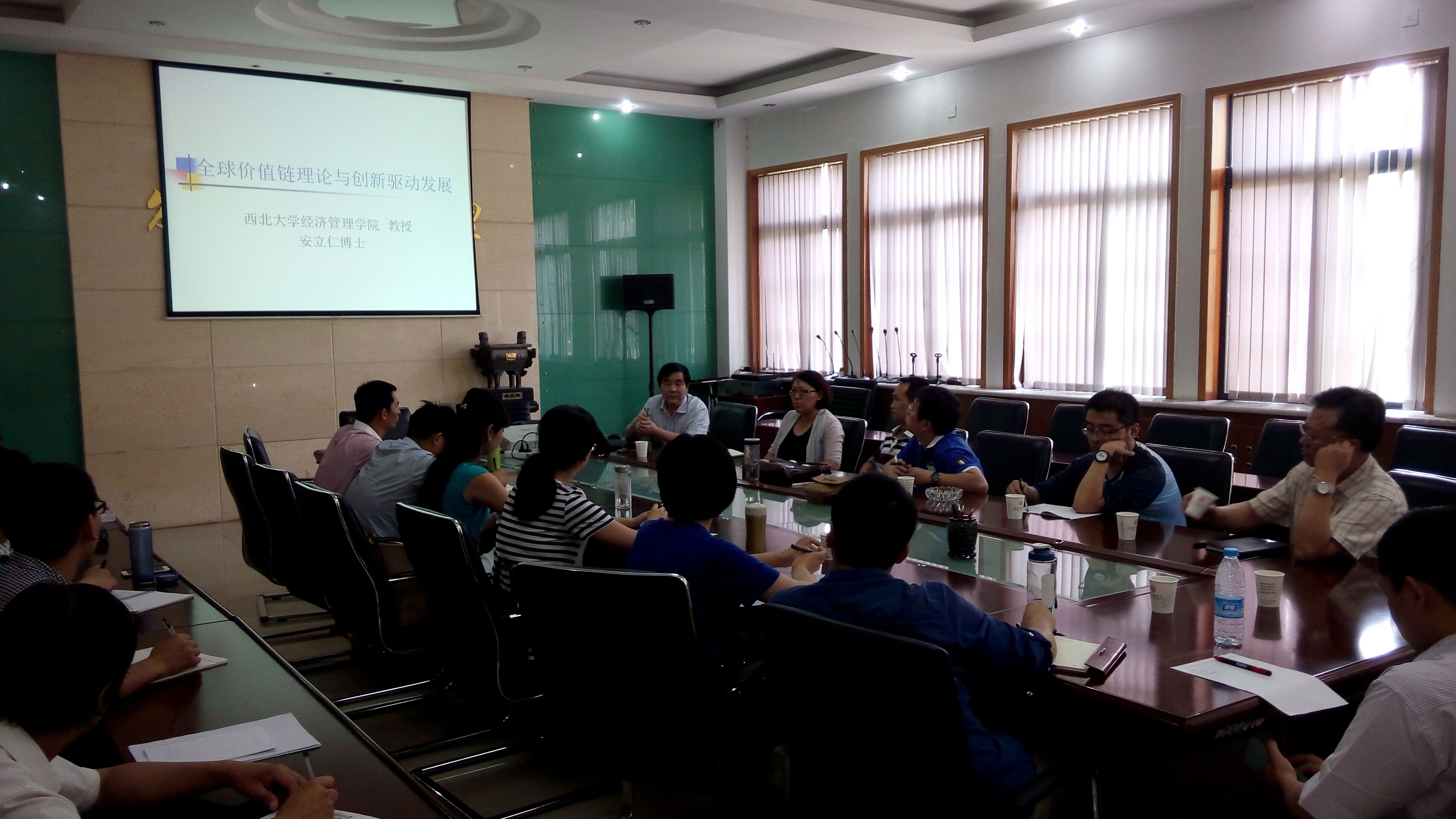 惠宁教授组织公司青年教师和博士生、硕士生就全球价值链理论与创新驱动发展的相关问题展开热烈地讨论。