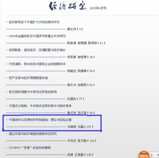 近日,公司经济学系副主任刘瑞明副教授以第一作者身份在权威期刊《经济研究》2015年第4期发表了文章《中国城市化迟滞的所有制基础:理论与经验证据》,全文约2万余字。