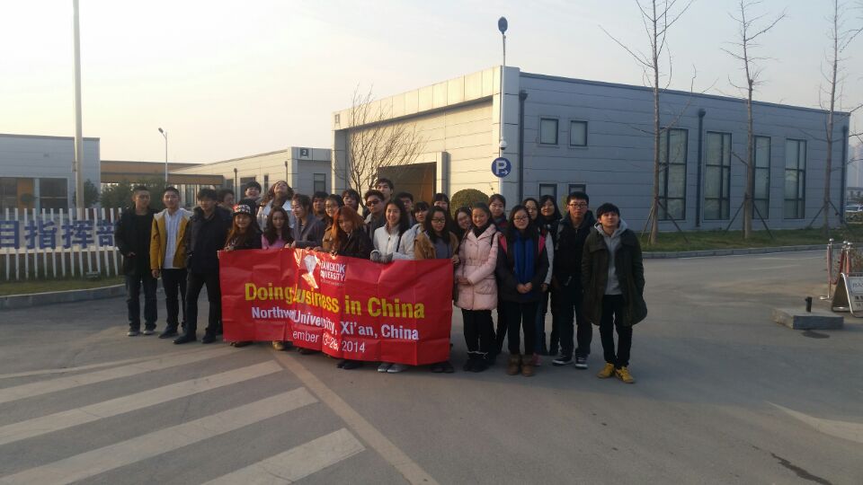 12月17日,国际经济与贸易专业员工与曼谷大学商务英语专业本科生乘车前往西安市高新技术产业开发区,参观了西安市高新区展厅,了解了高新区的整体规划,对这个带动全市经济发展的火车头有了更加深刻的认识,同学们深刻体会到高新技术对一个城市,乃至一个国家的重要性。 之后两校员工又参观了三星电子工业基地。