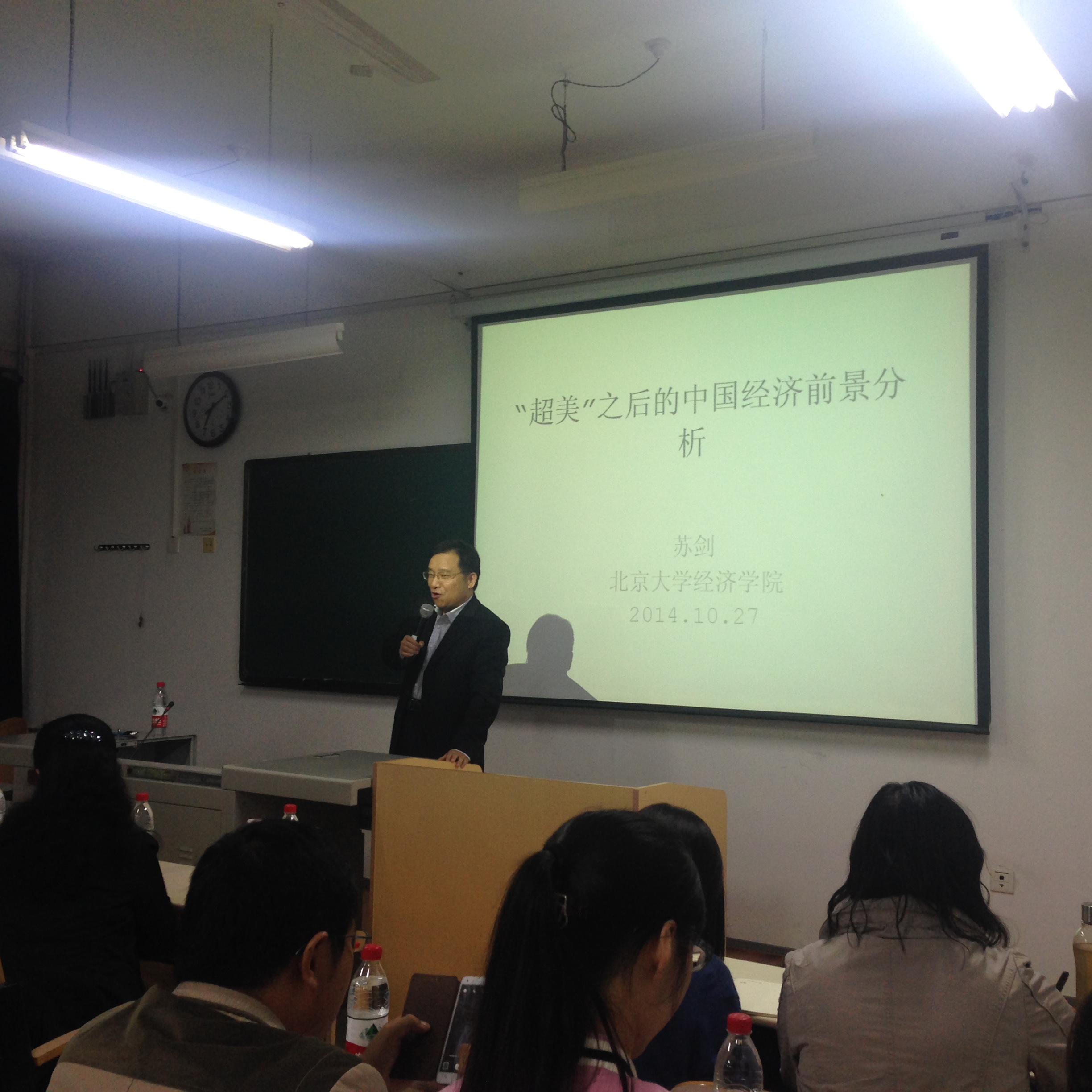最后,苏剑教授就中国经济总量超美之后的经济发展前景的诸多问题与参加沙龙的师生进行了深入讨论。何爱平教授对苏剑峰教授的报告进行了总结,并对苏剑教授此次精彩的报告表示衷心的感谢。
