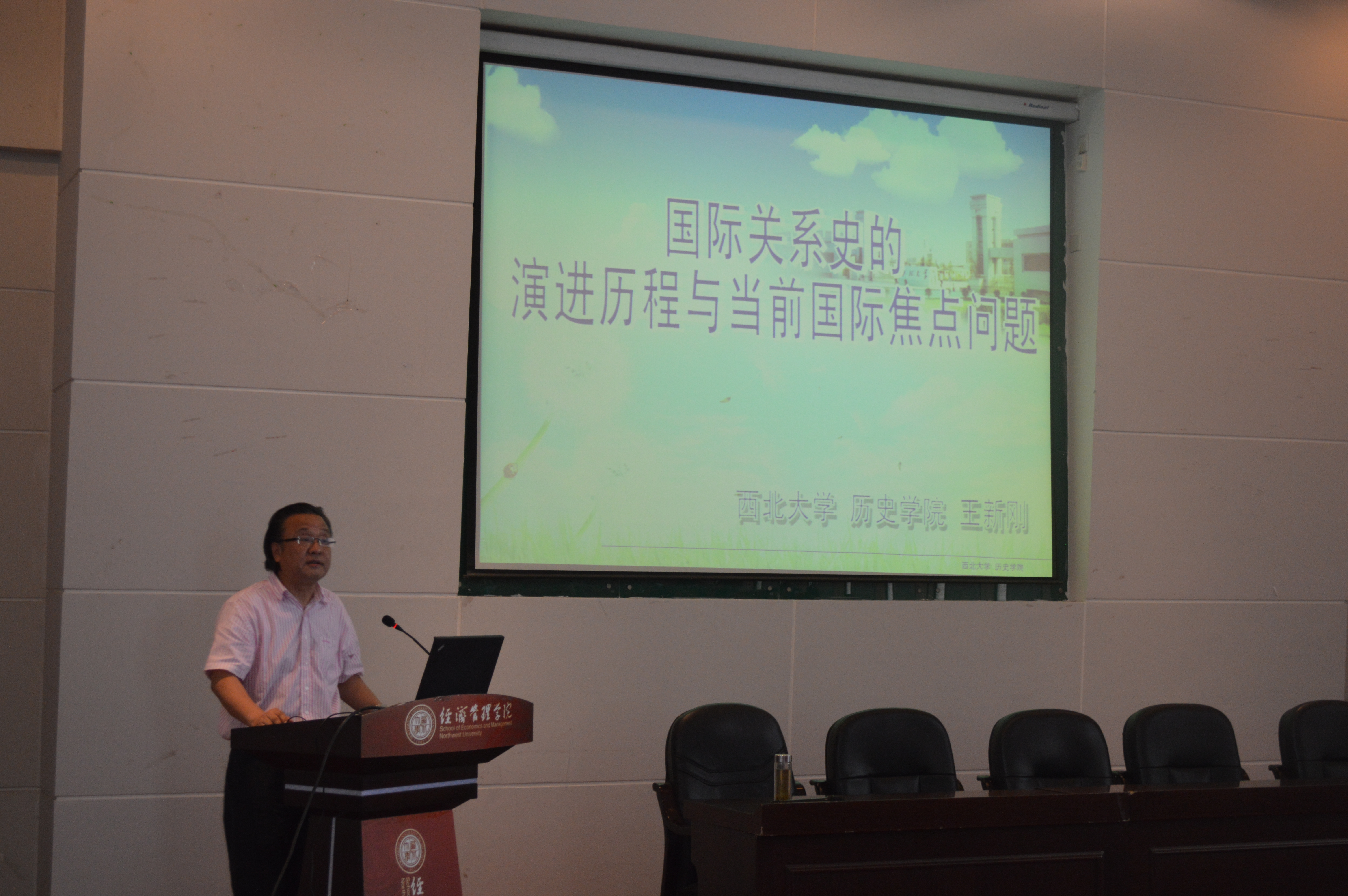 6月16日下午4点,“学问与人生”员工素质教育系列讲座第十二讲在金海恒业报告厅举行。公司历史学院副经理、博士生导师王新刚教授应邀为公司本科生做了题为《国际关系史的演进历程与当前国际焦点问题》的讲座。讲座由公司党委书记李国良主持,师生共计260余人到场聆听了报告。