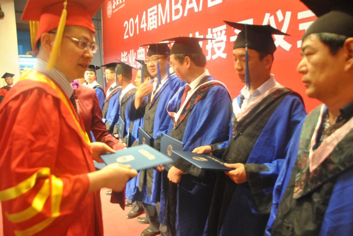 7月5日上午,公司成功举办了2014届EMBA、MBA毕业生学位授予仪式暨毕业典礼。董事长方光华教授、校研究生院常务副经理王正斌教授、海航商业控股有限公司董事长兼总裁马超、公司党政班子成员、各系系主任、各中心主任及教师代表以及EMBA/MBA毕业生及家属500余人出席了活动。活动由副经理吴振磊副经理主持。本次共有68名EMBA学员获得高级管理人员工商管理硕士学位,272人获得工商管理硕士学位,127人完成陕西省工商管理硕士学习,顺利毕业。
