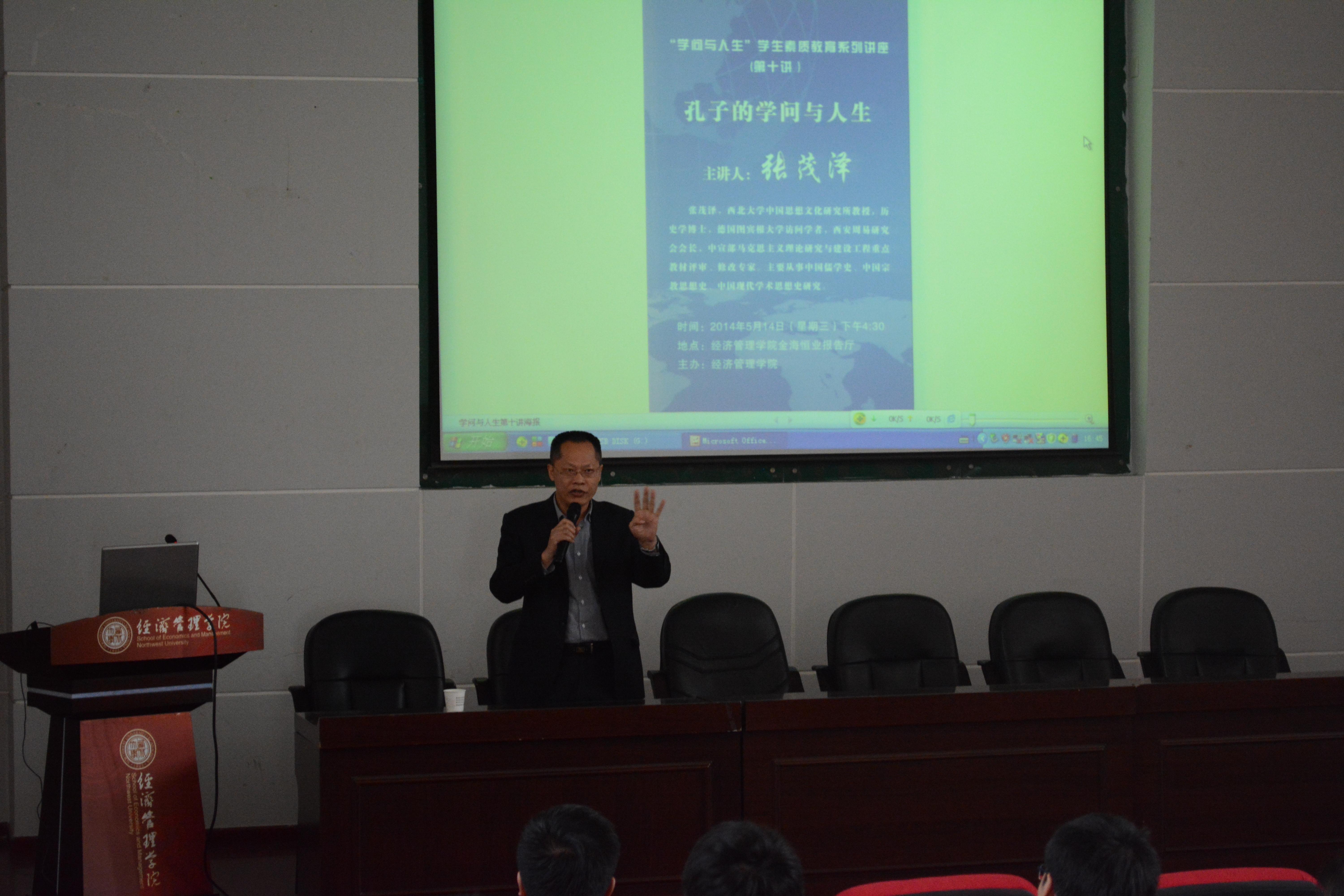 5月14日下午4:30,公司“学问与人生”素质教育系列讲座第十讲在金海恒业报告厅举行,公司中国思想文化研究所张茂泽教授应邀作了题为《孔子的学问与人生》的讲座。讲座由公司党委书记李国良主持,副书记李一凡、部分辅导员和本科生共200余人到现场聆听了报告。