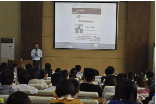 5月17日下午,学院93级院友、果麦文化传媒公司董事长、作家、著名出版人路金波应邀来院,为“MBA名家讲座”做了题为《禅与如何做生意》的讲座。讲座由副经理吴振磊主持,MBA在校生及部分MBA联合会成员、MBA中心全体工作人员近300人出席了活动。