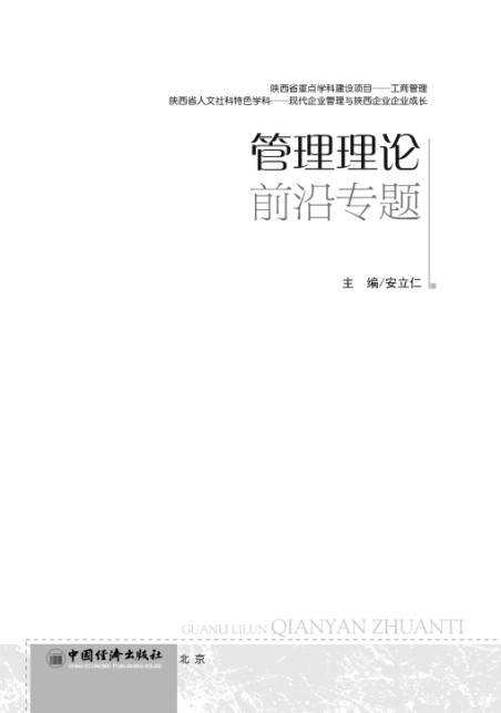 近日,由公司工商管理系教授、博士生导师安立仁主编,管理类部分青年教师参与完成的《管理理论前沿专题》由中国经济出版社出版,全书共30万字。该书是陕西省重点团队建设项目——工商管理和陕西省人文社科特色学科——现代企业管理与陕西企业成长的建设成果之一。