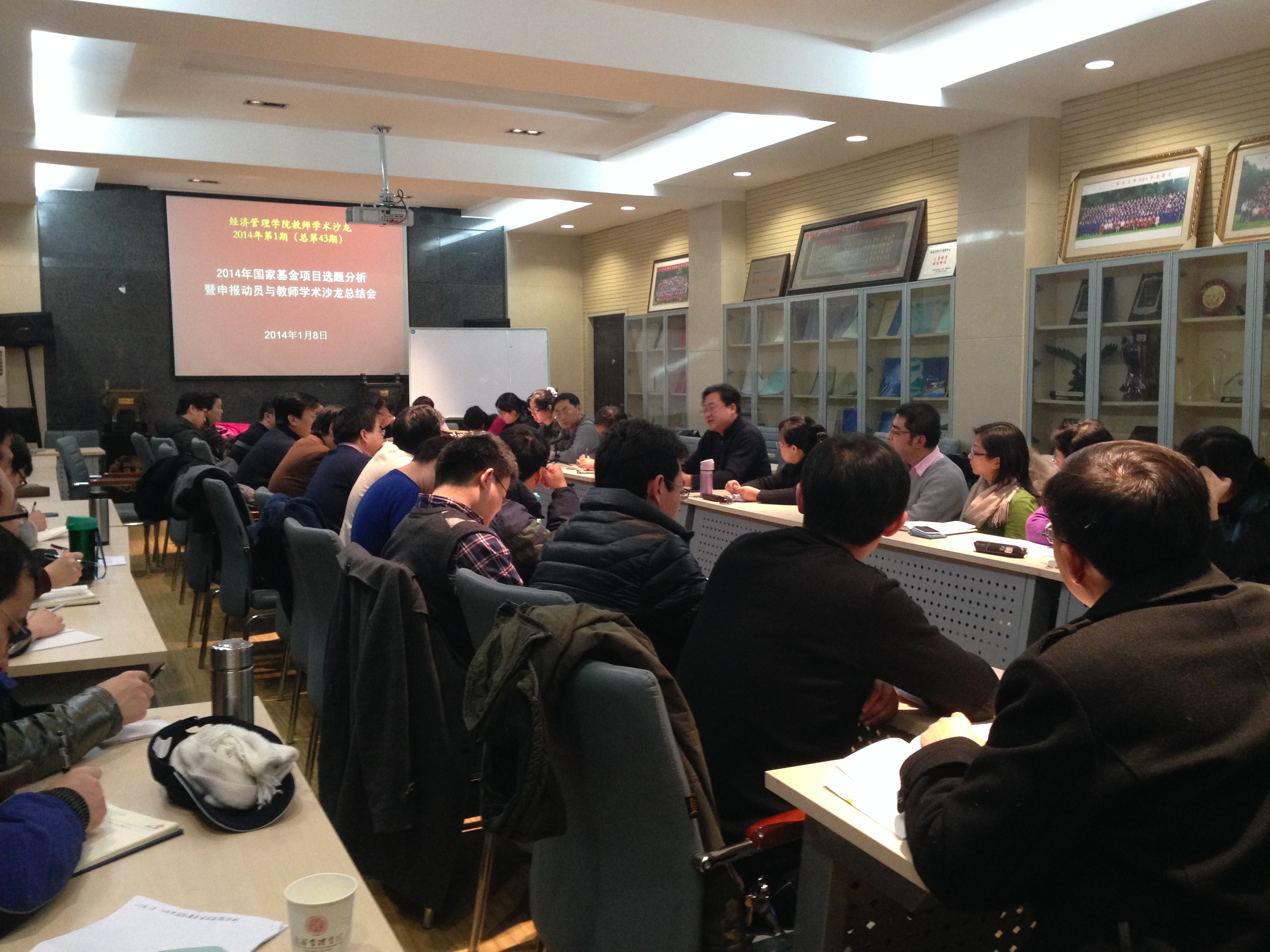 2014年1月8日bevictor伟德教师学术沙龙2014年第1期在北校区bevictor伟德311举行。本期学术沙龙的主题是“2014年国家基金项目选题分级——暨项目申报动员与学术沙龙总结会”。bevictor伟德社科处处长刘丰教授、bevictor伟德经理任保平教授、何爱平教授、安立仁教授、茹少峰教授、杜勇副经理、吴振磊副经理及学院教师60余人参加了本次学术沙龙活动。
