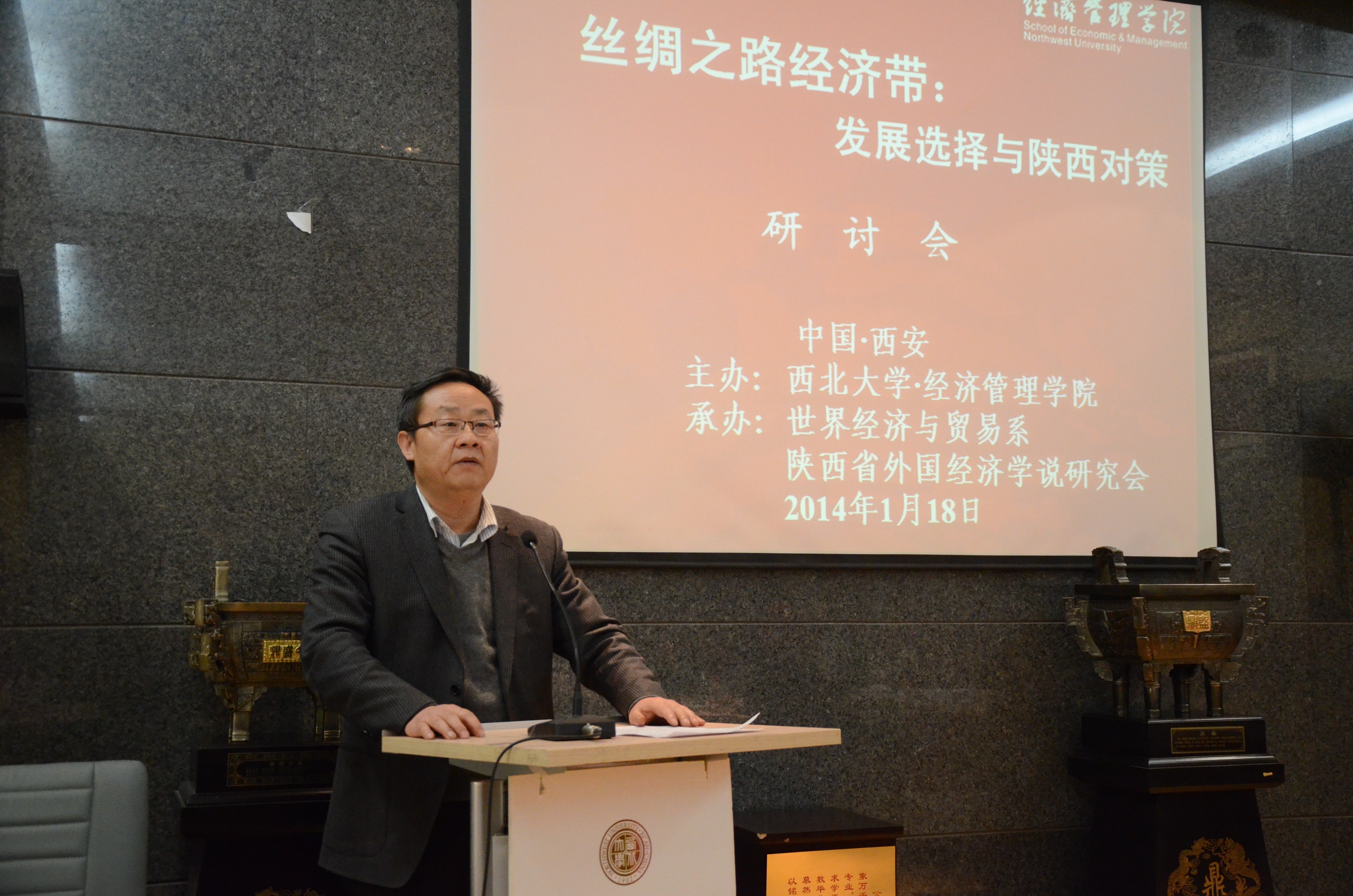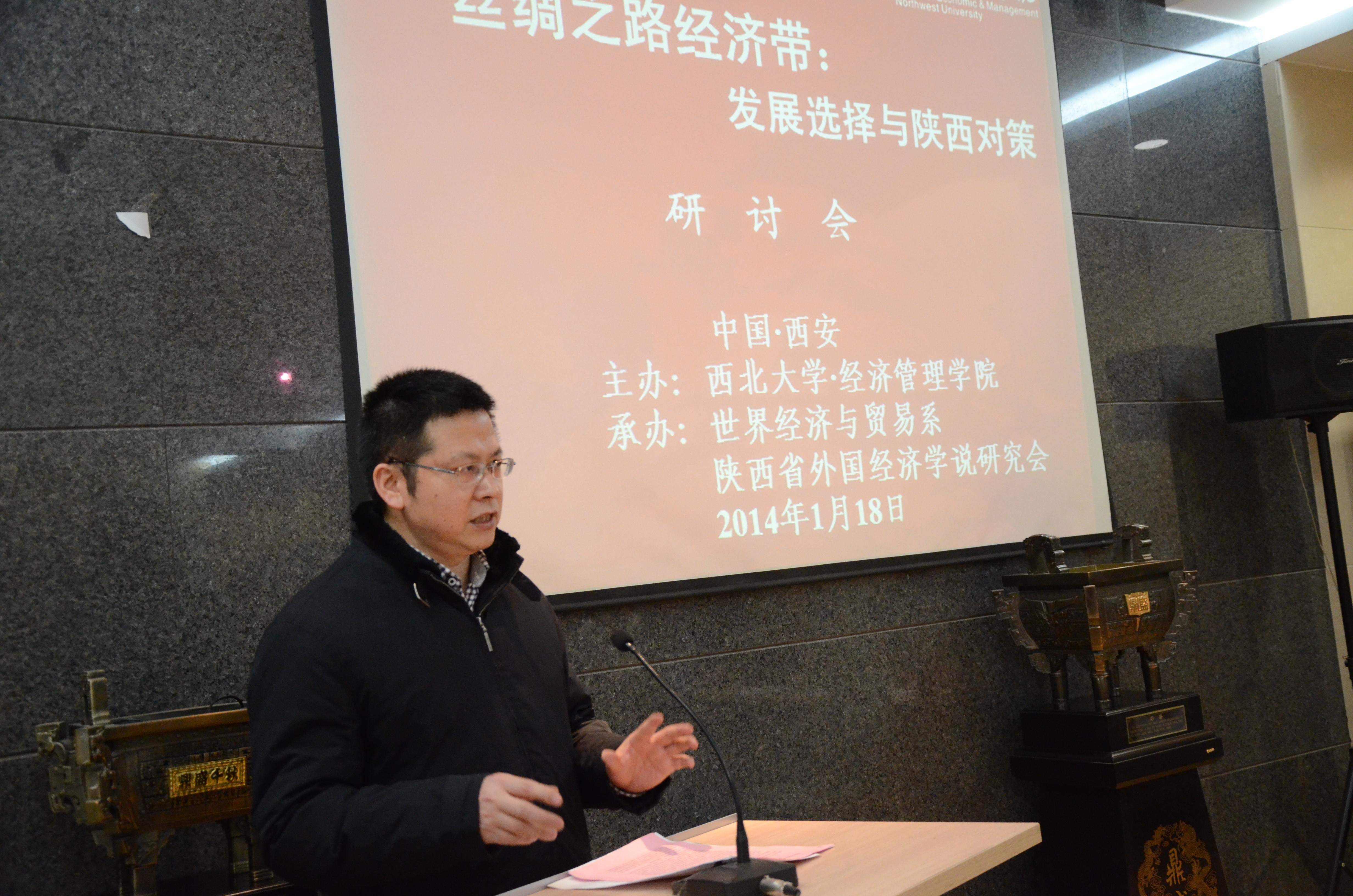 2014年1月18日下午,由公司主办、世界经济与贸易系和陕西省外国经济学说研究会联合承办的“丝绸之路经济带:发展选择与陕西对策”研讨会在太白校区隆重举行。bevictor伟德董事长方光华、陕西省社科联副主席何泽彪、陕西省政府研究室副主任杨三省、西安交通大学欧亚经济论坛研究院经理冯宗宪、陕西省教育厅科技处处长甘世平,陕西省委宣传部理论处副处长安海胜等出席研讨会,来自bevictor伟德社科处、国际交流学院、bevictor伟德、中东研究所、文化遗产学院的领导和专家,以及公司世界经济与贸易系和旅游系部分教师及员工代表共40余人参加会议。研讨会由吴振磊副经理和国贸系吴航主任共同主持。