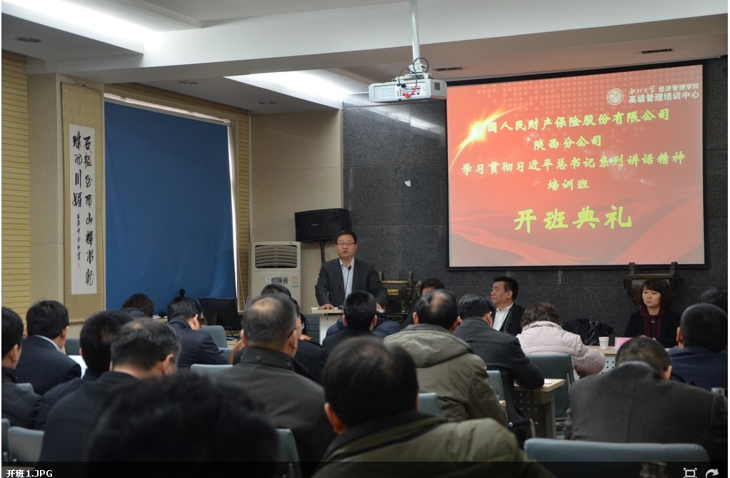 2月9—13日,受中国人民财产保险股份有限公司陕西省分公司的委托,公司成功举办了为该公司中高层管理人员开办的“学习贯彻习近平总书记系列讲话精神”专题培训班。