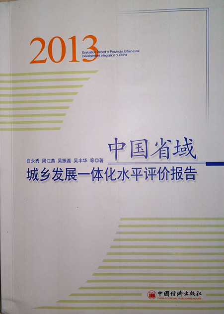 近日,公司白永秀教授与周江燕博士、吴振磊副教授、吴丰华博士等人合著的《中国省域城乡发展一体化水平评价报告(2013)》由中国经济出版社出版。全书共8章,45.9万字。该书是国家社科基金重大招标项目“西部地区形成城乡经济社会一体化新格局的战略研究(08&ZD027)”的深化研究成果,也是国家重点学科“政治经济学”建设项目、陕西省重点学科“人口、资源与环境经济学”建设项目和陕西高校哲学社会科学特色学科“现代经济理论与西部经济发展”建设项目的重要成果。