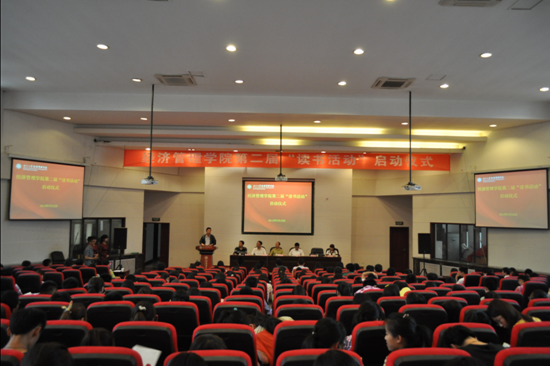 此次读书活动的主题是“读书、践行、成长”。李一凡老师首先向同学们解读了此次读书活动的实施方案、实施细则以及具体的工作安排,同时对本次读书活动所要达到的具体目标和活动要求做了详细说明。随后,本科生代表叶苗和研究生代表张新渊分别发言,表达了自己对读书重要性的认识,表示一定要按照活动要求勤奋读书、深入思考、不断总结,取得实效。最后,王宝老师作了动员讲话,他通过回顾学院历年来培养的一大批成功学者在校期间努力读书、不断奋进的事例,向同学们阐述了大学阶段读书对于日后成才、成功的重要性。他希望同学们在校期间要凝思聚神,好好读书,读好书,努力营造积极向上的良好学习氛围,要不断历练自身勤奋好学的优良品质,力争成为经管学院的新一代人才。