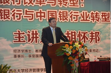 10月20日下午,由公司主办,MBA、EMBA教育中心承办的“公司关中大讲堂第七讲”暨“2013年国家MBA校园开放日活动之一”在太白校区大礼堂隆重举行。中国交通银行党委书记、董事长、公司兼职博导胡怀邦教授应邀做了题为《商业银行改革与转型——未来银行与中国银行业转型发展》的学术报告。公司600余名师生参加了活动。报告会由经理任保平教授主持。