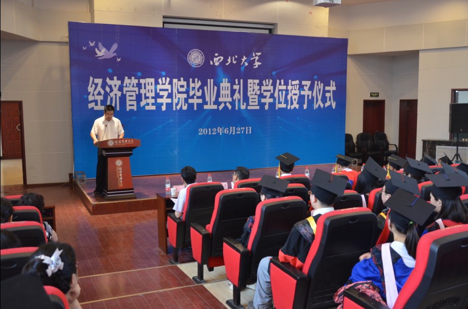 6月27日上午,公司隆重举行了2012届毕业生学位授予仪式暨毕业典礼。公司党政领导班子成员、各系系主任、教师代表、部分员工家长代表和550余名2012届毕业生参加了活动。在活动中,公司党委书记王宝宣读了2012年毕业生人数及学位授予人数, 院学术委员会主席白永秀教授、经理任保平教授、副经理惠宁教授分别为今年毕业的博士毕业生、硕士毕业生和本科毕业生授予了学位。