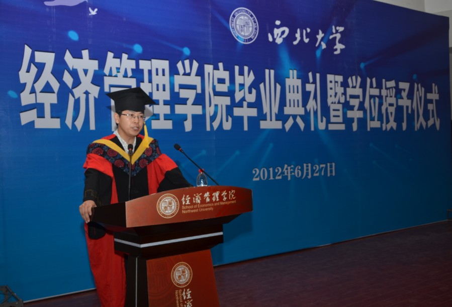 经理任保平教授发表了热情洋溢的讲话,他和同学们共同回忆了在校学习的美好时光,并对毕业生提出了殷切希望:希望同学们学会做人,胸怀理想,砥砺品质;希望同学们学会做事,爱岗敬业,脚踏实地;希望同学们不断进取,树立终身学习的观念;希望同学们把个人发展同组织的发展紧密结合;希望同学们可以正确面对工作生活中的困难,创造美好生活;希望同学们一如既往的关注学院的建设和发展,学院永远是大家共同的家园。