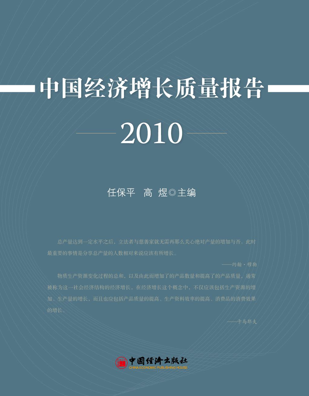 任保平教授的新著《中国经济增长质量报告(2010)》近日由中国经济出版社出版,该书是教育部新世纪优秀人才支持计划的最终成果,全书17章,共计21万字。该书首先对前改革时代中国的经济增长质量进行了反思,认为前改革时代中国经济增长的数量增长与质量增长不一致,中国的经济增长属于典型的资本驱动型和资源驱动型经济增长,中国增长率非常高、波动性很大,中国经济增长中生产率绝对值逐步提高,但是相对值比较低,收入分配不平等制约了经济增长质量,中国经济增长的资源环境代价高,中国经济增长造成了严重的失衡问题。然后对后改革时代进行了前瞻,认为后改革时代提高中国经济增长质量要着力解决收入分配不平等、宏观经济的稳定性、国民经济竞争力、自主创新等问题,为了提高中国模式的增长质量需要作好三大转型:发展方式转型、发展战略转型和路径转型。接着从投资效率、碳排放、市场集中度、城乡协调度、社会发展视角、经济风险、灾害损失、金融深化、人的发展、公共服务均等化、增长成果分享性、经济虚拟化程度等十二个视角对中国经济增长质量进行了评价,并对中国东部、中部和西部地区的经济增长质量进行了评价。