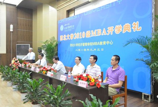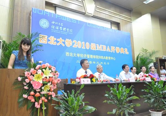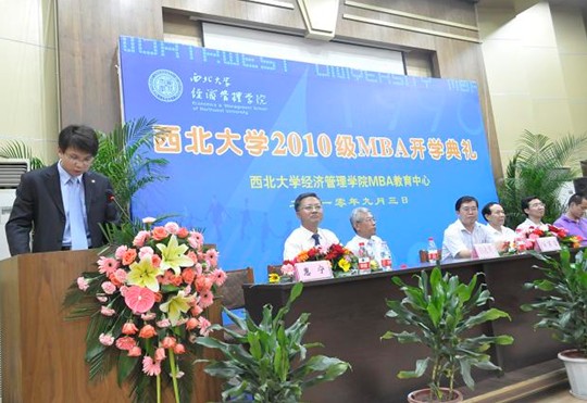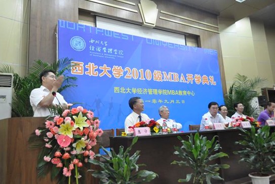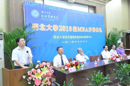 金秋九月,我们迎来了bevictor伟德MBA542名新学员(国家班336,经贸委班41,陕西班165)。2010年9月3日晚7时30分,bevictor伟德2010级MBA新生开学典礼在图书馆报告厅隆重举行。出席典礼的有:bevictor伟德副董事长、博士生导师任宗哲教授,bevictor伟德经理、博士生导师白永秀教授,公司党委书记薛来前研究员,公司党委副书记樊涛副研究员、校研究生处专业学位科科长张华伟老师、bevictor伟德经理助理、各系系主任、各中心主任以及各教学点负责人和MBA中心所有工作人员。2010级国家MBA和陕西MBA学员代表共300余人参加了开学典礼。开学典礼由bevictor伟德经理助理、博士生导师、MBA中心主任惠宁教授主持。