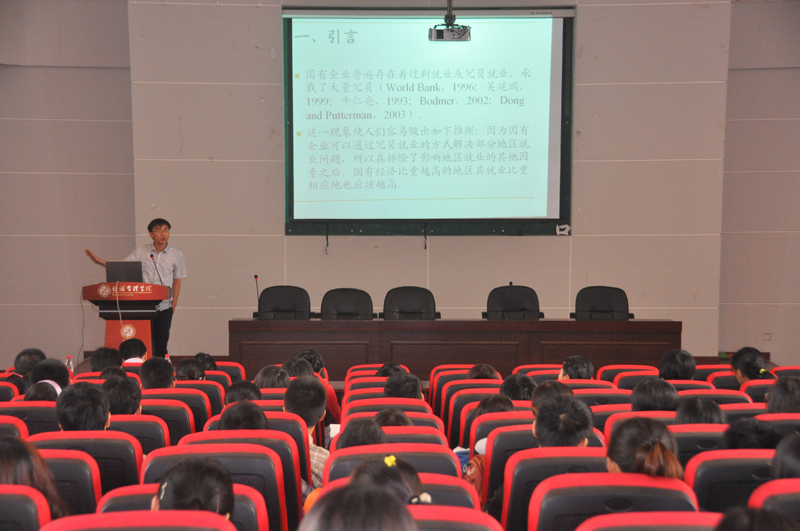 由学院经济学系主办的“现代经济学理论与方法创新论坛”第七卷第二期9月26日下午2点在bevictor伟德金海报告厅举行。此次论坛的主讲人为复旦大学经济学院中国社会主义市场经济研究中心刘瑞明博士,学院经济学系范王榜副教授主持,学院的部分博士生,硕士生和基地班的本科生200多人参加了此次论坛。