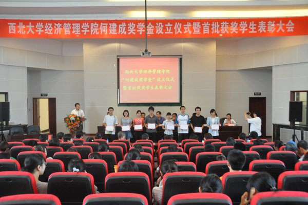 “何建成奖学金” 由西安市西三爻村改造发展有限公司董事长何建成先生出资200000万元人民币,面向公司在读本科生设立的社会奖学金。每年奖励25名思想进步、成绩优异、积极参加集体活动的优秀员工,每人每年奖励2000元人民币,“何建成奖学金”共设立四年。