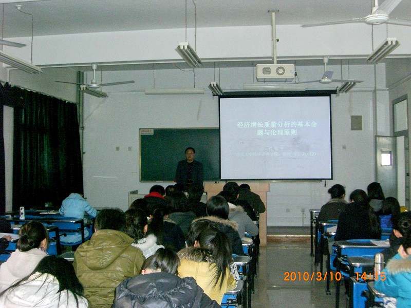 由学院经济学系主办的“现代经济学理论与方法创新论坛”第六卷第八期3月10日下午2点在学校南校区1205教室举行。学院的部分博硕士生、经济学基地班和学校其它专业的员工100多人参加了此次论坛。这是新学期的第一次论坛,至此论坛已经走到了第六个年头,举行了88期。