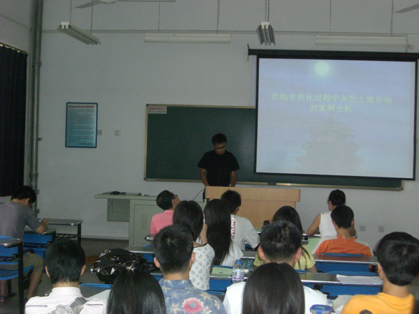 论坛由学院经济学系林建华老师主持,由学院2004级经济学基地班李冀同学做了题为“农地非农化过程中灰色土地市场的案例分析”的报告。文章针对当前我国社会经济当中的热点问题“小产权房”面临的政策困境,提出个人对于农地直接入市交易的看法。根据对我国现行土地产权制度安排的研究,认为在城市化对于土地的需求增加但国有城镇土地供给有限的假定下,土地的商品属性得到人们的再确认作为一种诱致性的制度变迁可以满足传统的土地制度安排的供求缺口,因而农地自发直接入市是一种合理的行为。但是由于农户相对于土地使用者在信息等方面处于劣势,因而会造成交易过程中的效率低下和福利损失。而政府征地作为农地非农化入市交易的现有唯一合法途径,由于政府在征地过程中的垄断地位造成农地非农化收益分配不合理。