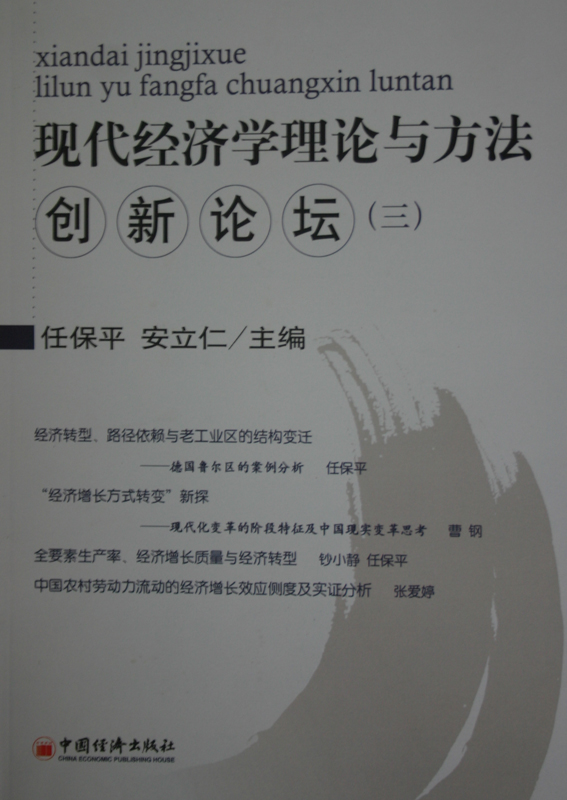 《现代经济学理论与方法创新论坛》第三辑近日由中国经济出版社出版了。《论坛》第三辑由任保平教授、安立仁教授担任主编,范王榜、何爱平、高煜、宋宇副教授担任副主编。