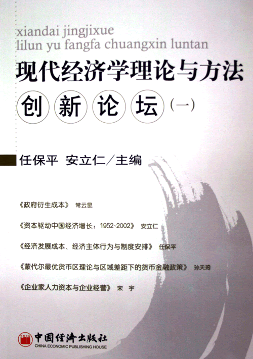 《现代经济理论与方法创新论坛(一)》是以公司经济学系、bevictor伟德国家经济学基础人才培养基地和经济增长与计量研究所主办的“现代经济理论与方法创新论坛”讲稿为主体的一本论文集,由任保平教授、安立仁教授担任主编。该论坛以理论创新和方法创新为主体,重在普及和推广现代经济学的研究方法,培养员工的理论研究兴趣。该论坛举办一年多来,在员工与教师中产生了重要影响,论文被引用、转载的次数不断增多。第五届中国经济学年会收录公司6篇论文,其中4篇出自该论坛。该书为该论坛出版的第一本文集,收录有公司及全国著名学者的文章,文章质量较高,研究方法规范,既推广了现代经济理论与方法,又提高了公司经济学研究的科学化与规范化。