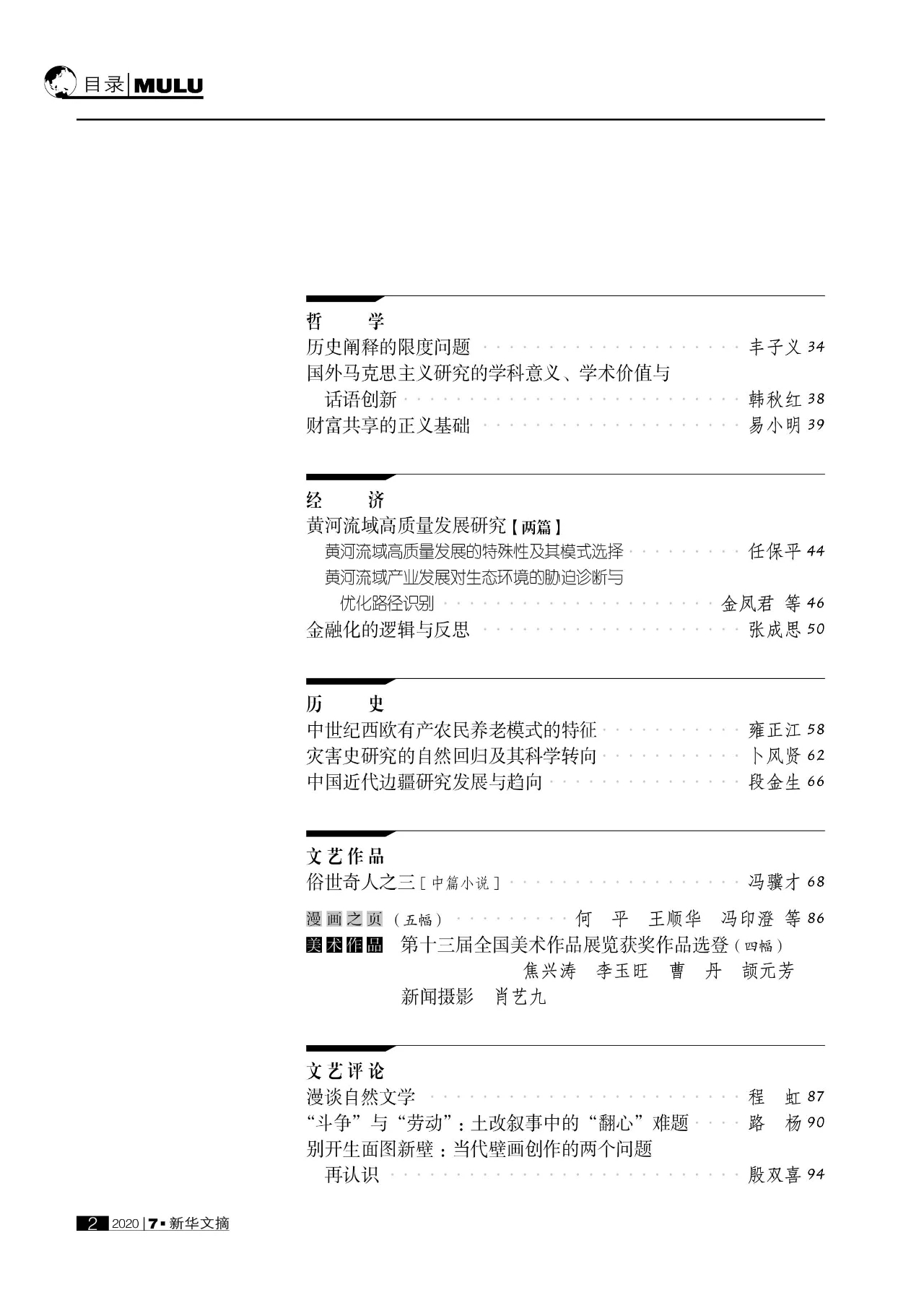 《新华文摘》2020年第7期全文转载公司任保平教授文章“黄河流域高质量发展的特殊性及其模式选择”,同时作为封面文章加以推荐。该文发表于《人文杂志》2020年第1期。