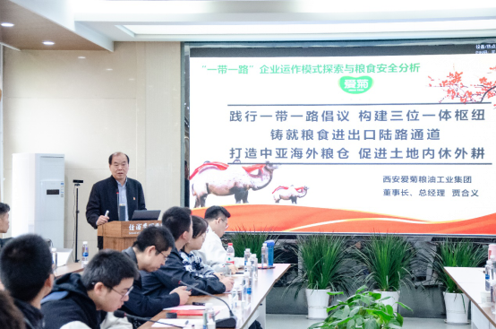 聘任仪式结束后,贾合义教授为公司师生作了题为《“一带一路”企业运作模式探索与粮食安全分析》的主题报告。