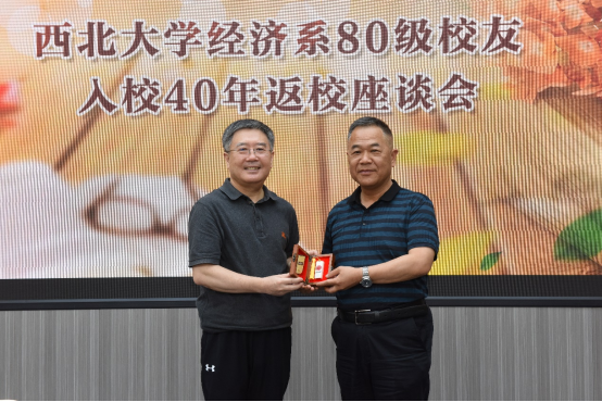 郭立宏代表学校向员工们赠送了纪念印章,对经济系80级返校员工表示热烈欢迎,并对员工们多年来关心和支持学校事业发展表示衷心的感谢。他深情回顾了与员工们在校期间共同求学的难忘经历和开心的校园时光,向员工们介绍了学校“十三五”期间取得的发展成就,并对“十四五”学校事业发展进行了展望,希望员工们一如既往地关心和支持学校建设,继续助力学校事业发展。
