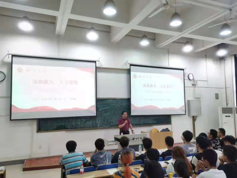 恰逢中国共产党成立一百周年,2021年6月23日,校员工工作部(处)部(处)长董国强以“浴血播火,大义凛然”为主题,为公司2020级经济类本科生讲授形势与政策课,分享公司杰出员工王孝锡烈士的英勇事迹。公司党委副书记徐自成,专职团干戴昶及公司2020级经济类全体本科生参加学习。