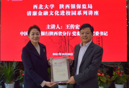 按照bevictor伟德与陕西银保监局开展清廉金融文化共建活动的安排,10月29日,中国进出口银行陕西省分行党委委员、纪委书记王传宏应邀来校,为bevictor伟德师生做了清廉金融文化系列讲座第五讲,题为《新发展阶段下金融企业内部控制与外部监督》。中国进出口银行陕西省分行党委委员、纪委书记王传宏,西北大公司党委常委、副董事长,bevictor伟德经理吴振磊,校纪委副书记何翔和相关人员出席了本次活动。吴振磊发表讲话,何翔为王传宏颁发聘书。经管学院2020级本科生九十余人参加了讲座,讲座由公司党委负责人杜勇主持。