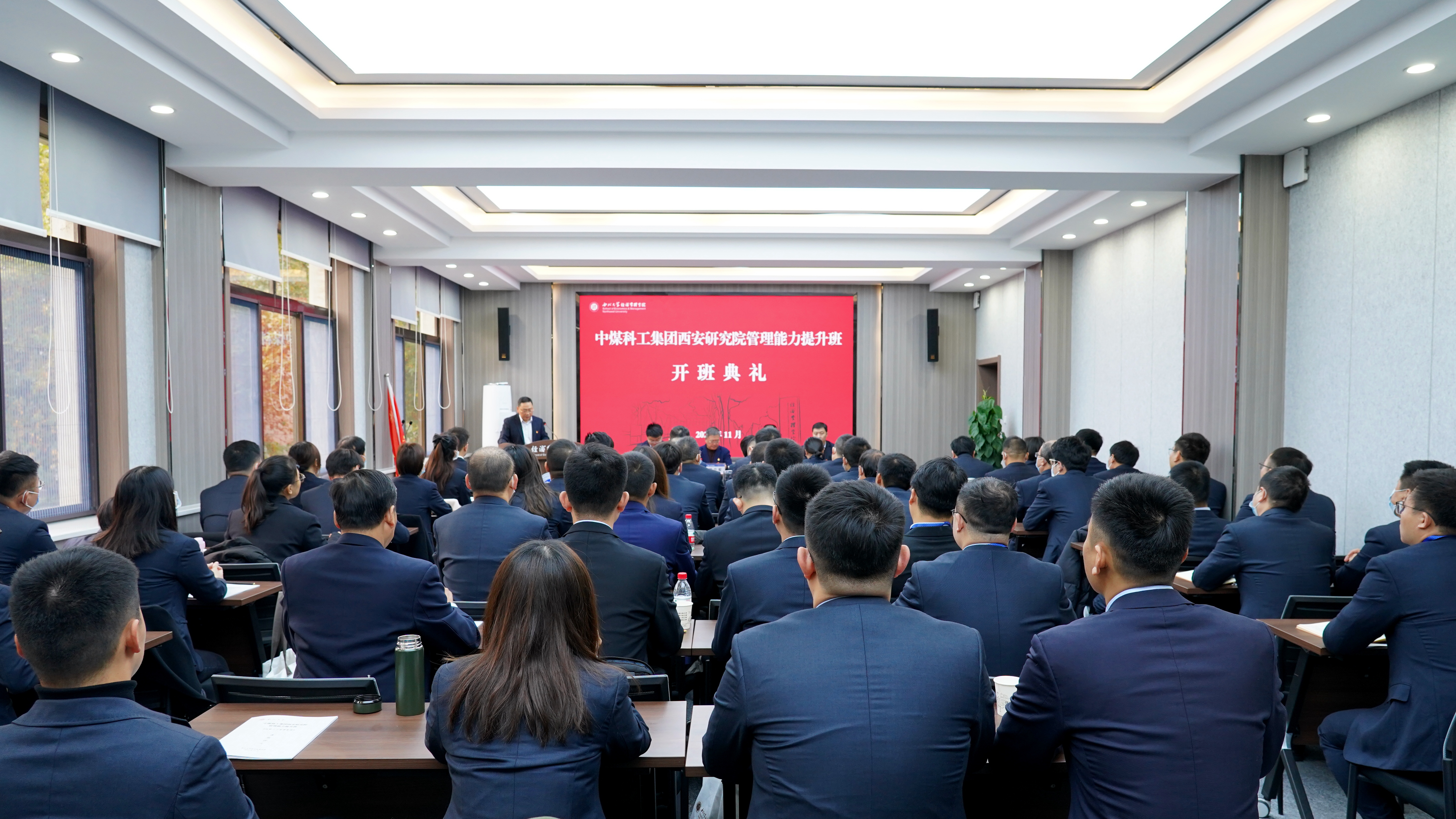 董事长郭立宏,中煤科工集团西安研究院有限公司党委书记、董事长王海军,副总经理王皓,公司党委常委、副董事长吴振磊出席典礼。中煤科工集团西安研究院有限公司人力资源部(党委干部部)主任许翠华,中煤科工集团信息技术有限公司党政办公室主任张彦林,bevictor伟德MBA教育中心、高级管理培训中心主任郭亚军及研修班学员50余人参加了仪式。开班典礼由公司党委书记杜勇主持。