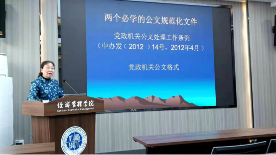 11月3日,公司公共管理学院副教授靳连冬为MBA/EDP中心全体员工做“公文写作”培训,讲授公文的基本写作规范以及如何培养良好的公文意识。
