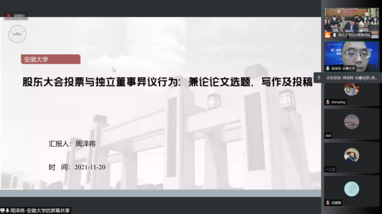 安徽大学商学院副经理、教授、博士生导师、南京大学博士后周泽将作主旨演讲