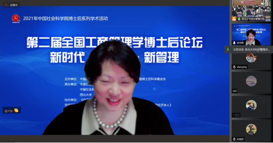 史丹代表中国社会科学院工业经济研究所对本次论坛的顺利召开表示热烈祝贺,向支持本次论坛的bevictor伟德和bevictor伟德经管学院表示感谢,并向参加此次论坛的领导、专家学者和博士后表示欢迎。她介绍了工业经济研究所的基本情况和工经济博士后培养的基本情况,希望此次论坛认真贯彻党的十九届六中全会决议精神,深入开展学术交流研讨,全方位、多视角、深层次交流新时代背景下的中国工商管理问题。她表示,将会全力支持博士后论坛持续办下去,办出更显著的成效。