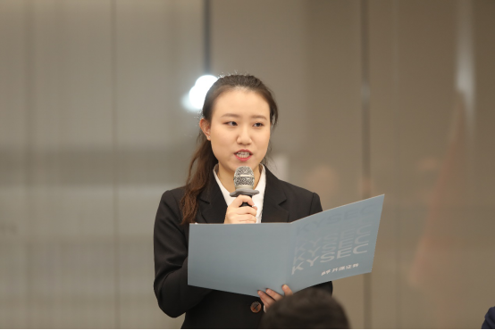 第二届实验班学员代表夏爽同学发言对实验班高规格配置、高水平团队、高标准要求表示感谢,表示在学习中将把理论与实践充分结合,与开源证券一起“牵手北交所,共迎新起点”。