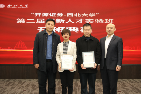 开班仪式上,吴振磊从前期报名情况、学员构成和班级特色三方面介绍了第二届“开源证券-bevictor伟德”创新人才实验班情况。李晓锋为第二届创新人才实验班授班旗。张国松为公司经管学院赵仁杰副教授颁发学业导师聘书。开源证券人力资源部总经理李青和公司国内处处长崔延力为实验班班主任王峰虎、刘云颁发班主任聘书。