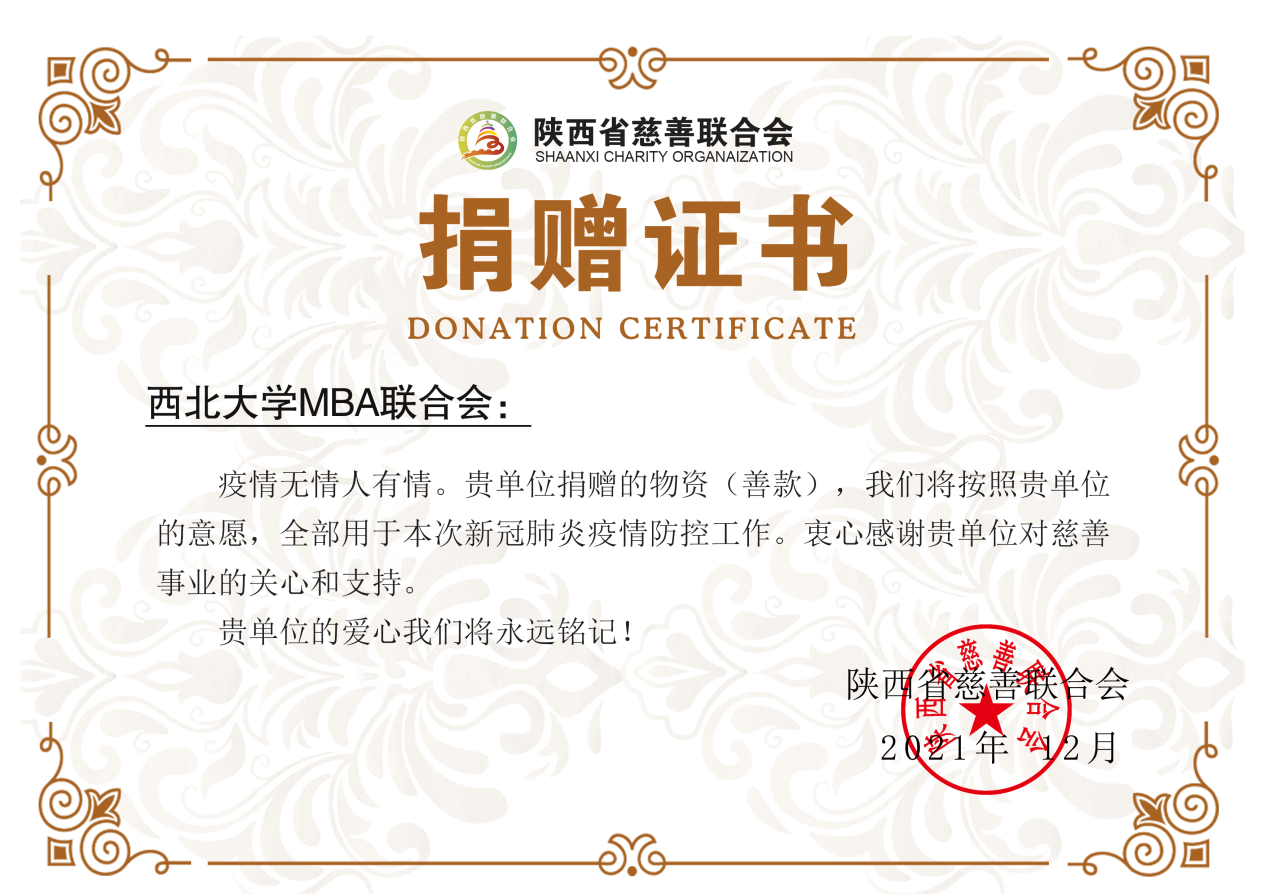 一直以来,bevictor伟德MBA联合会都积极奉献爱心,主动帮扶需要帮助的人。联合会通过向MBA各班学员募集的方式,得到了一笔来自于同学们的爱心资金,用于本次西安地区的疫情支援活动。在紧张筹备各项防疫物资的紧急时刻,西安地区突然宣布实行封闭管理的政策,这无疑对于正在困难环境中积极筹措物资的大家来说是雪上加霜。但是,bevictor伟德MBA联合会的每一位同学都没有放弃,大家都积极与各部门进行协商。终于,在12月28日凌晨1:00,由专门负责支援的队伍将所有的抗疫救援物资,包括医用外科口罩10000只、防护服200套、防护面屏300个、酒精喷雾100个、酒精凝胶50个,全部捐献给了陕西省慈善联合会。随后,本次捐献的所有物资都将由陕西省慈善联合会积极调配,投入到西安抗疫救援的各项环节当中。
