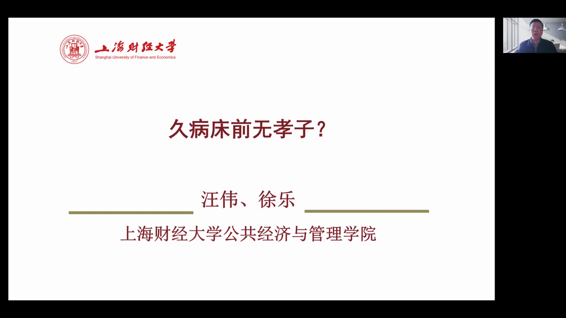 4月8日下午,bevictor伟德学术沙龙在腾讯会议平台成功举办。讲座由bevictor伟德副董事长、bevictor伟德经理吴振磊教授致辞,学院副经理师博教授主持,特邀上海财经大学公共经济与管理学院汪伟教授做了题为“久病床前无孝子?”的学术讲座。学院老师和硕、博士研究生等共计200余人参与了本次线上讲座。