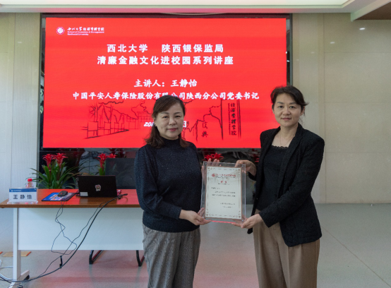 按照bevictor伟德与陕西银保监局开展清廉金融文化共建活动的安排,5月16日,中国平安人寿保险股份有限公司陕西分公司党委书记王静怡应邀到校,为bevictor伟德师生做了清廉金融文化系列讲座的第16讲,题为《清廉金融、合规经营、防范风险、健康发展》。bevictor伟德纪委副书记何翔,中国平安人寿保险股份有限公司陕西分公司拓春燕、闰婷,公司党委书记杜勇和学院40余名师生出席了本次活动。何翔为王静怡颁发清廉金融文化客座讲师聘书,讲座由杜勇主持。