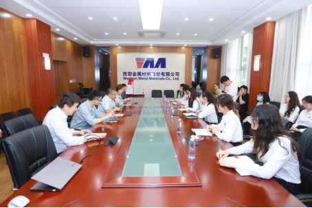 在参观西部材料工业厂房后,调研团一行与西部材料公司高管进行交流。西部材料副总经理兼董事会秘书顾亮针对有关公司社会责任、财务风险应对与钛工业产业化问题一一解答,使学员们对钛材料未来发展有了新的认识。