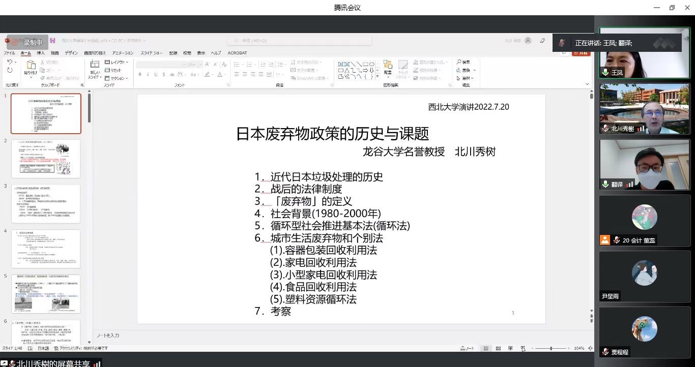 7月20日下午,学院特邀日本龙谷大学政策学部北川秀树教授做了题为“日本固体废弃物管理政策的演进历程”的学术讲座,讲座由王凤教授主持。学院教师和硕、博研究生等参与了本次线上讲座。