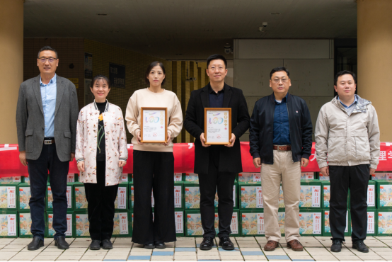 仪式上,MBA员工呼延博、张洁捐赠了价值1.6万元的助农产品猕猴桃。燕来代表学校接受捐赠,并为捐赠员工颁发了捐赠证书。