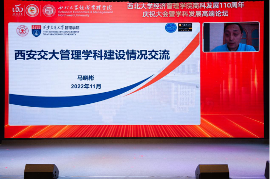 马晓彬书记分析了当前管理学科发展面临的机遇与挑战,从人才培养、科学研究、社会服务三方面介绍了西安交通大学管理学院团队建设的阶段性成效,并从加强党建引领、鼓励学科交叉、推进产教融合、深化国际合作四方面展望了西安交通大学管理学科未来的发展方向。
